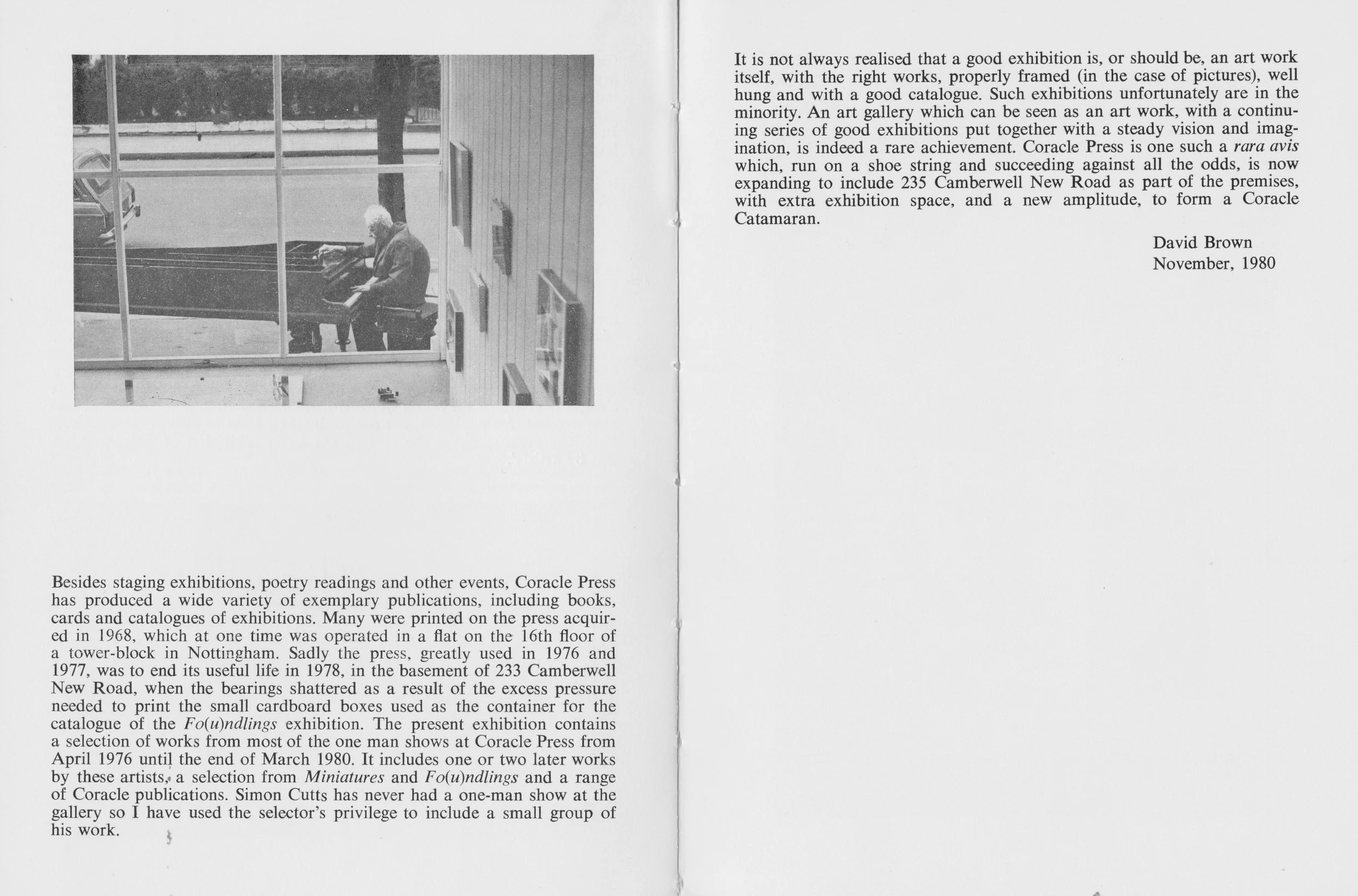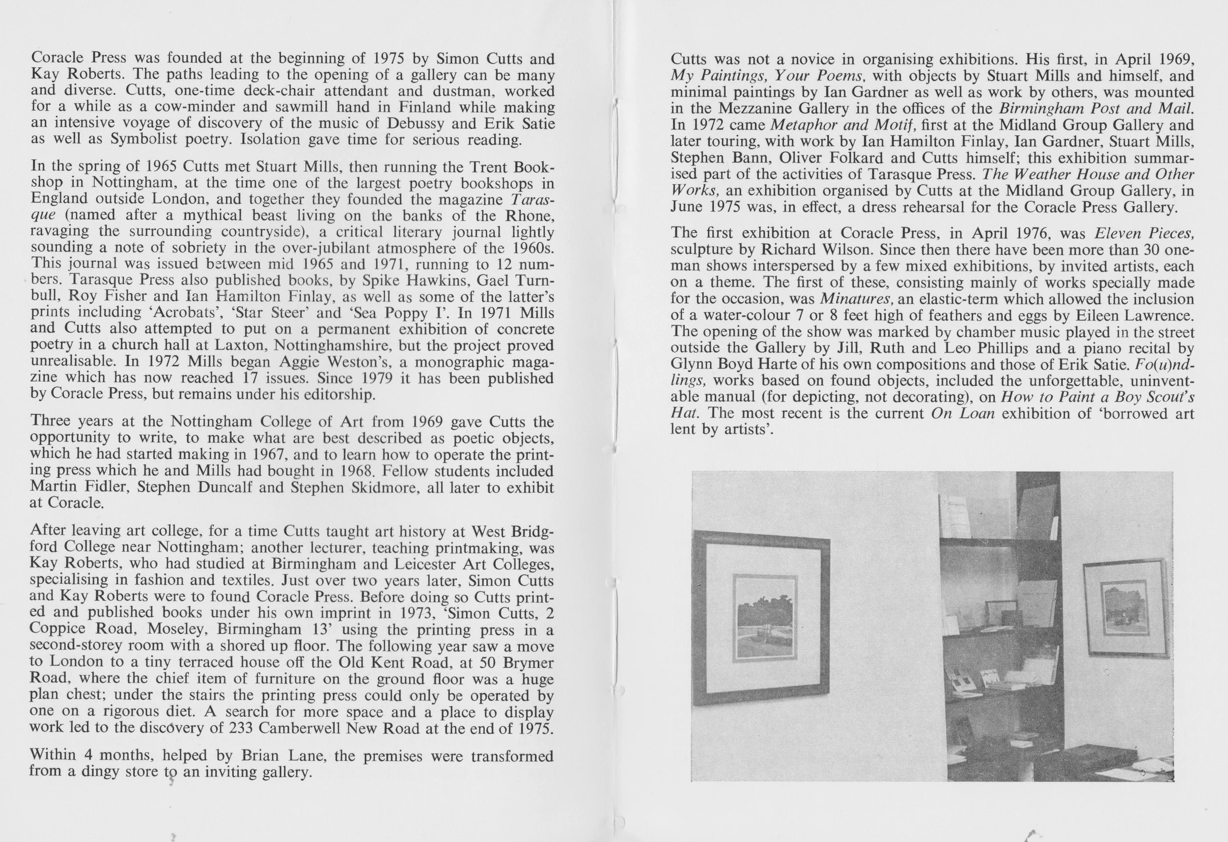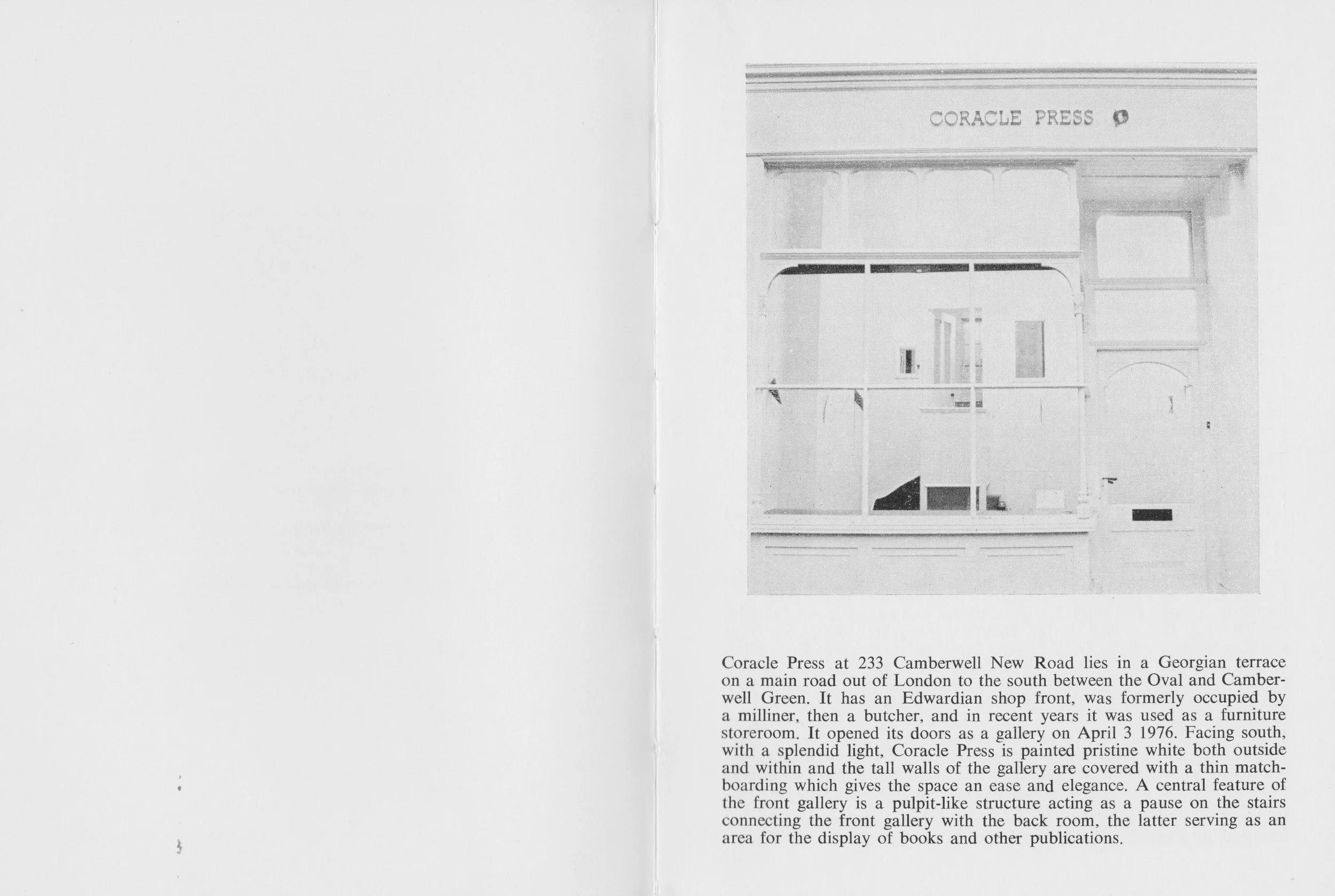 First page: Image of white front CORACLE PRESS + CORACLE DRAWING (my drawing)